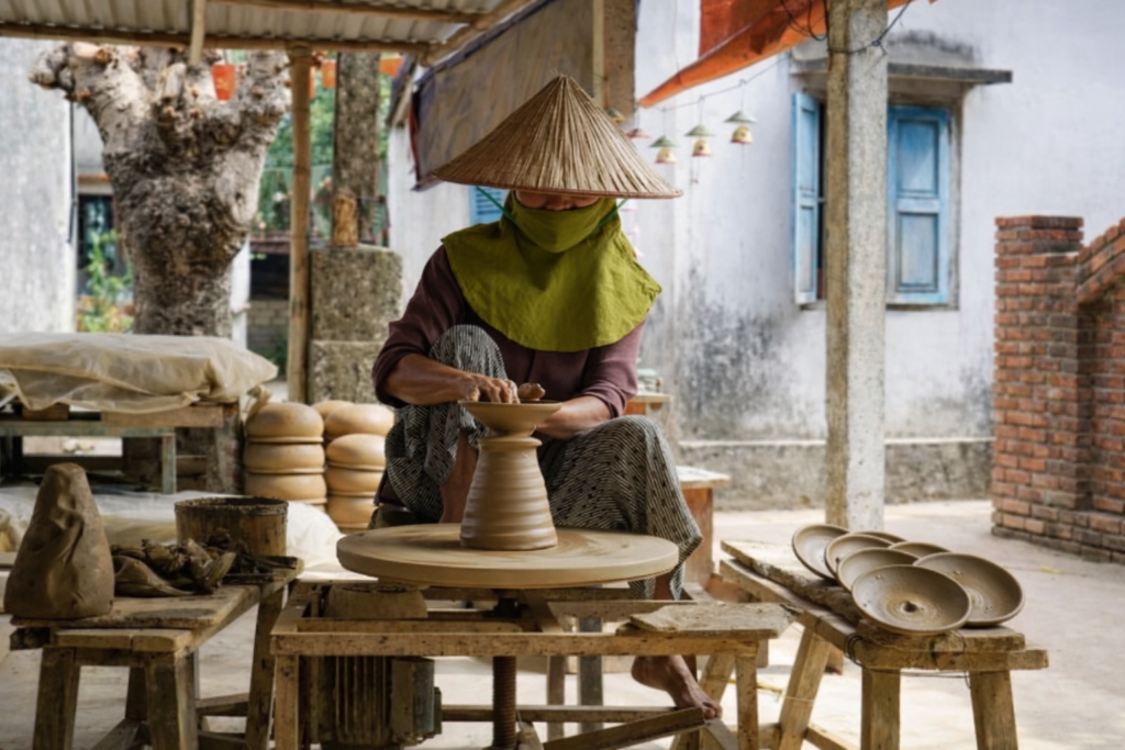 Погружение в древнюю культуру ремёсел! Эта мастерская — настоящий живой музей традиционной гончарной техники. Вы увидите, как вручную формуются изделия, как мастера создают уникальные формы и текстуры, сохраняя традиции народа Чам.