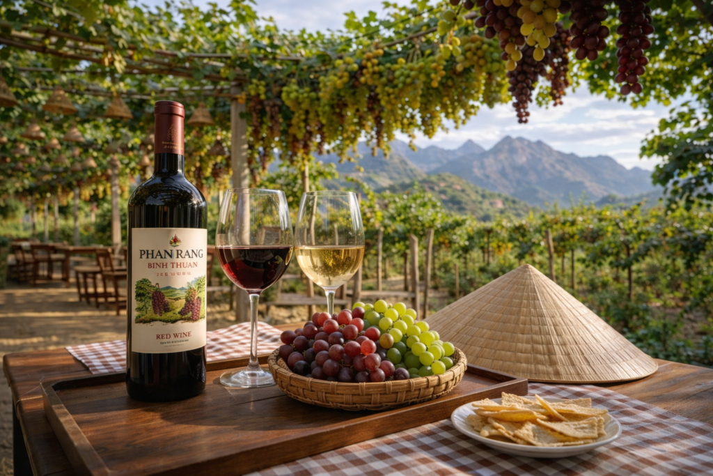Фанранг — одна из винодельческих жемчужин Вьетнама, благодаря сухому климату и солнцу здесь растут насыщенные сладкие сорта винограда. Прогулка среди аккуратных лоз, глубокие зелёные оттенки виноградников и дегустация местного вина/свежего сока — идеальная пауза после обеда.